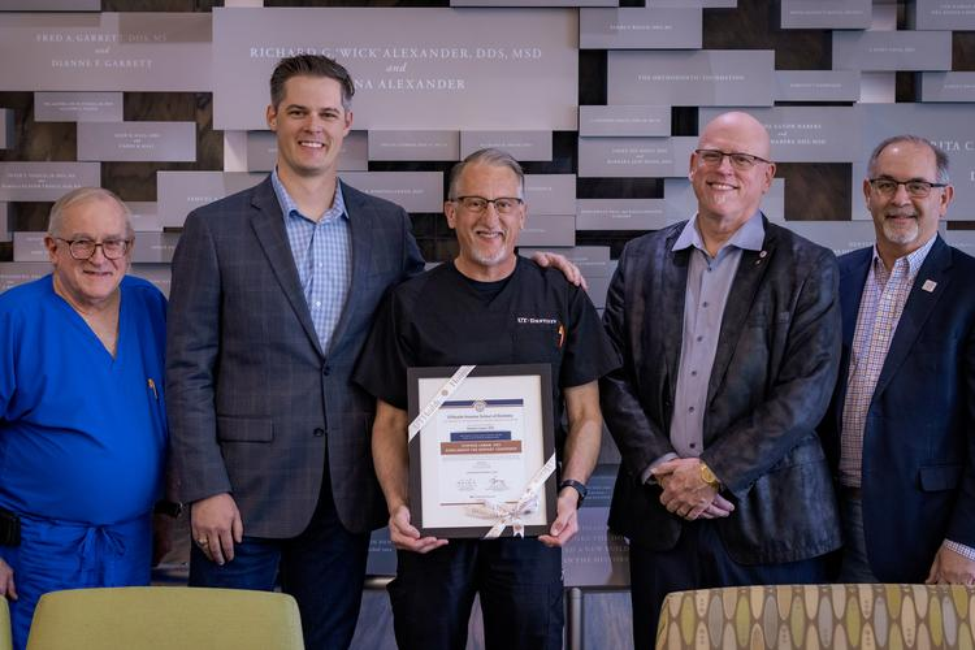 In February, Jay Elliott and Kyle Hale, on behalf of their families, surprised Laman with the presentation of a framed certificate honoring his impact as a mentor, educator, and leader in the field of dentistry with the establishment of the Stephen Laman, DDS Scholarship for Servant Leadership.