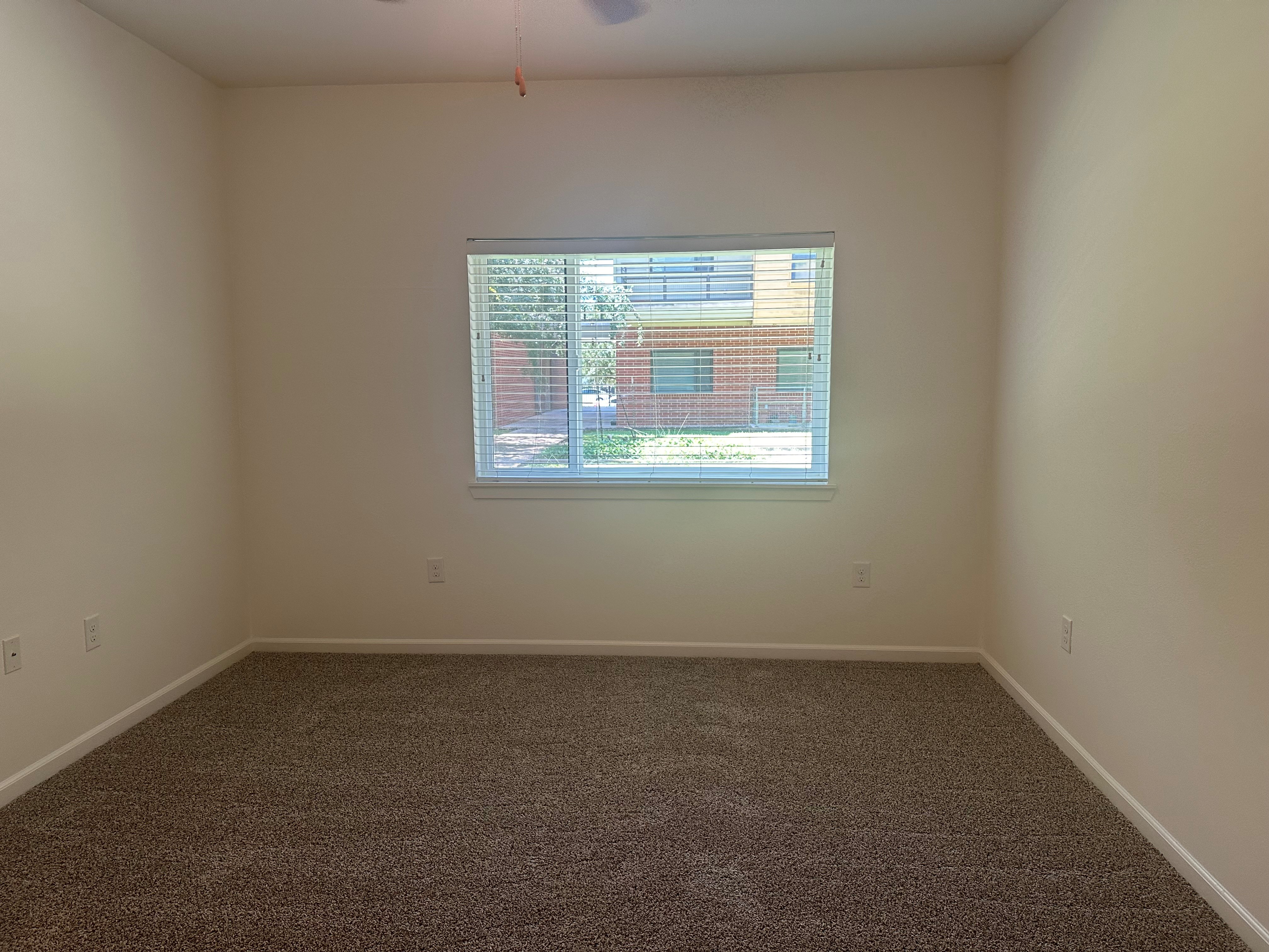University Housing - Phase Three - Bedroom - Your own private retreat — Phase Three apartments at UTHealth Houston University Housing include spacious bedrooms with natural light, wood-style floors, and modern finishes for comfort and convenience.