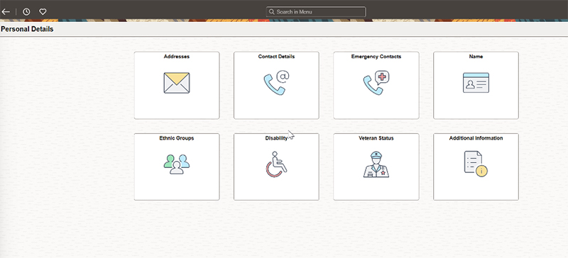 The PeopleSoft HCM Self Service module allows employees to change their personal information. You may access this module at the following site: https://selfservice.uth.tmc.edu/hrss/signon.html. Here you are able to enter/update the following by selecting the “Personal details” icon.