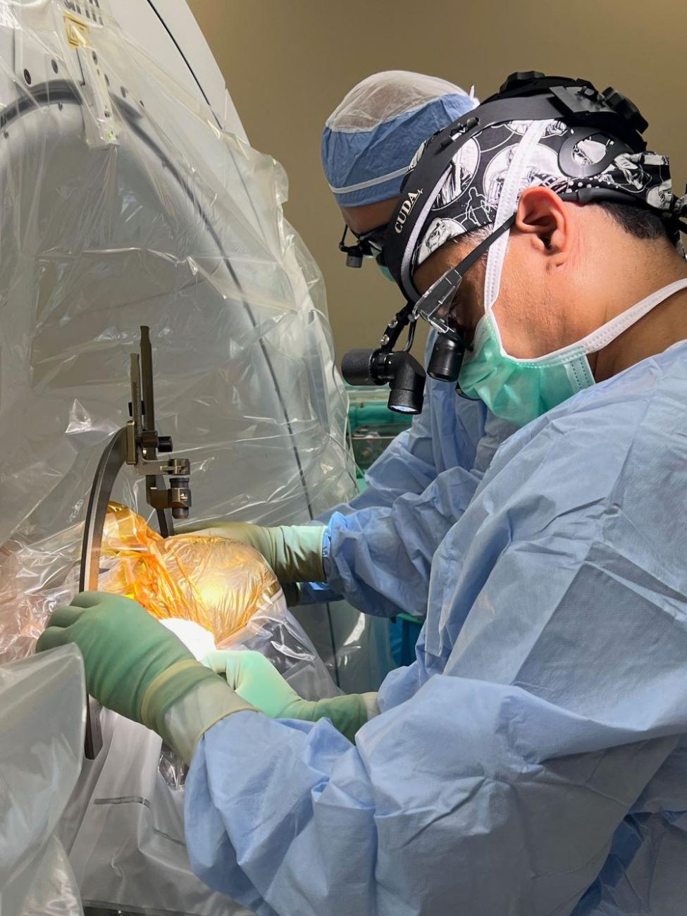 The procedure, part of a clinical trial, involves a single-use product injected in the hippocampus area of the brain. (Photo by UTHealth)