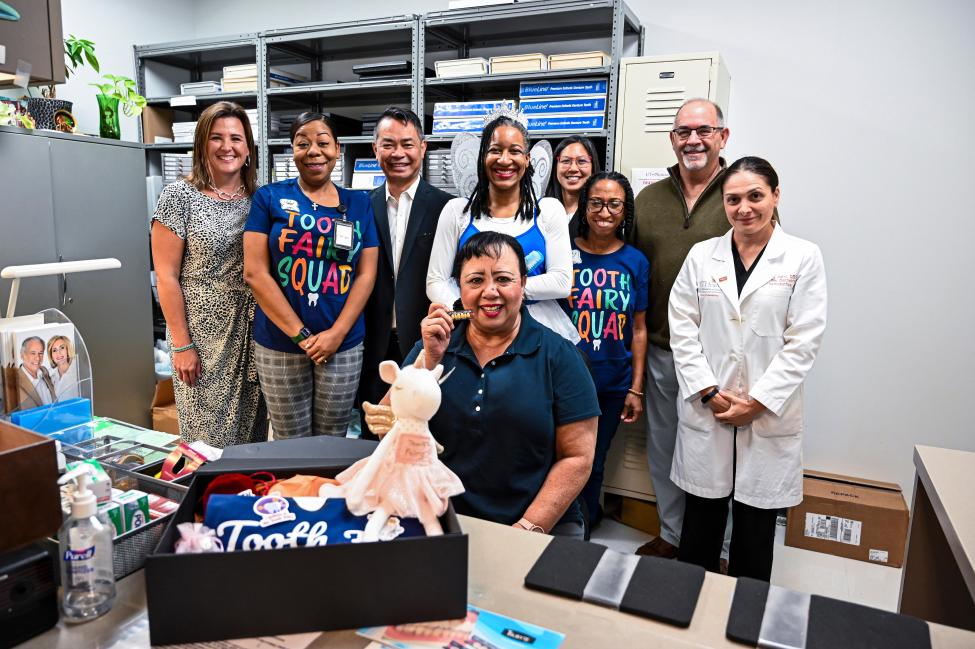 You may have heard of the Tooth Fairy. The beloved mythical creature helps children overcome fears of losing baby teeth and replaces a lost tooth with a special gift in recognition of their moment of bravery. However, UTHealth Houston School of Dentistry has its own “tooth fairy” in Everill Marcano, senior dental dispensaries assistant in the Tooth Room.
