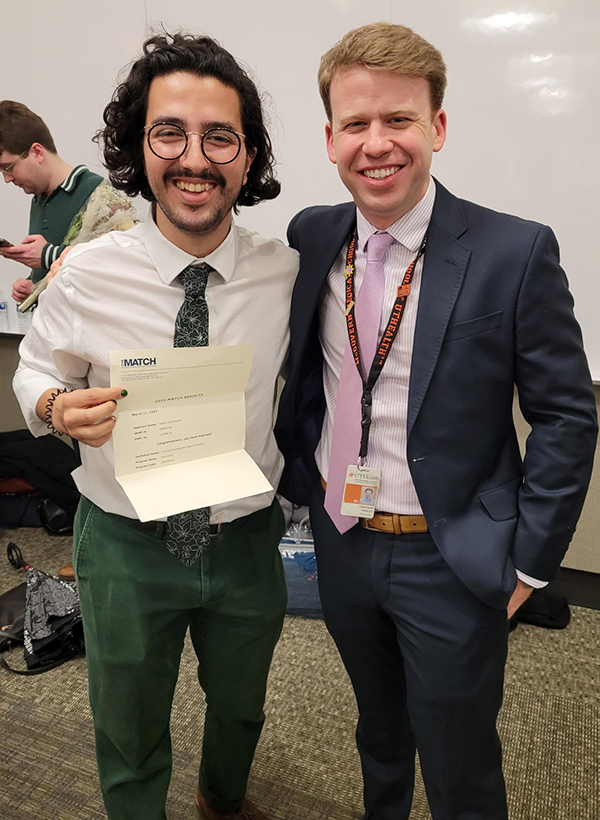 As the child of immigrants from Iran, a proud gay man, and someone who watched a family member struggle with mental health, Seena Ounsinegad found his niche in the medical field at the crossroads of behavioral health care and minority populations. Today, he learned he matched at The University of Texas Southwestern Medical Center in psychiatry. “This is one of the best programs in the country,” Seena said. “I am so excited to match to a top-notch program with access to community and psychotherapy training.” Seena will enter a field that is sorely in need of mental health specialists in Texas and across the country. “I have been interested in the workings of the brain, psychology, and human thought and behavior,” said Seena, 25, who was born in the Washington, D.C. area and grew up in Austin. “I was inspired to apply for a psychiatry residency because my family has a history of mental illness, and experiencing that second hand, seeing the cultural stigma in an immigrant family, was the intersection that drove me into being passionate about mental health.” Seena obtained his bachelor’s degree in neuroscience at The University of Texas at Austin before coming to McGovern Medical School, where he began volunteer work with survivors of sexual and domestic violence. He is also passionate about improving the lives of immigrant and refugee populations, and LGBTQ+ populations. He began researching nonconsensual sexual experiences in men and the resulting sexual violence impact on mental health, publishing a thesis on the subject in 2019. Seena has continued his research at McGovern Medical School and is working toward publication in a peer-reviewed journal. As an advocate for the LGBTQ+ community, Seena was president of the LGBTQ+ student organization in his second year, is an active member of the UTHealth Houston Pride Committee, and has led projects and initiatives for LGBTQ+ visibility, curriculum reform, and quality improvement. He was also a committee leader for Out for Health, an annual LGBTQ+ health conference led by Texas medical students, which was held virtually at McGovern Medical School in 2021. Seena found a strong mentor in J. Chase Findley, MD, associate professor of psychiatry and assistant dean of accreditation and educational quality improvement at the medical school. Findley is the faculty advisor for the Student Interest Group in Neurology and Psychiatry, which is co-led by Seena. “I approached Dr. Findley early on, and he has connected me to others who have become mentors of mine,” Seena said. “I have worked on several projects with him, and he has been an endless source of support. I cannot sing his praises enough.”