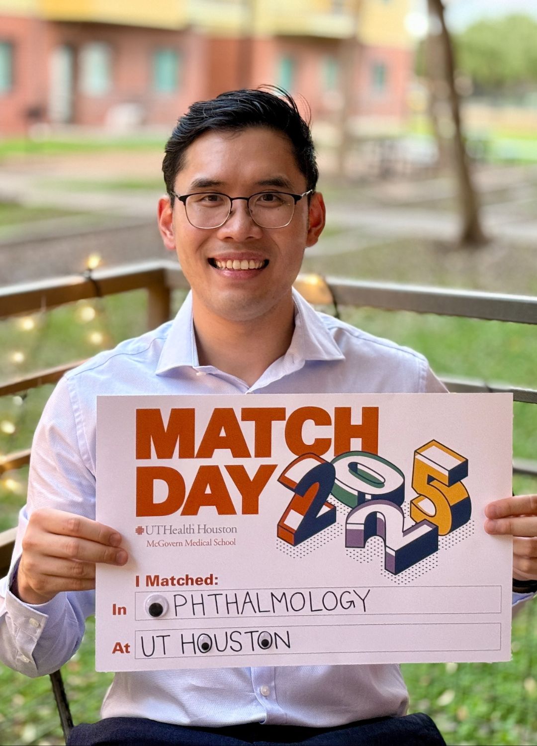 Calvin Wong, aged 25, MD/MPH student at McGovern Medical School, is eager to start his residency in ophthalmology and continue his training at McGovern Medical School. Wong will devote the next three years to studying a wide range of skills and practices involving the eyes.