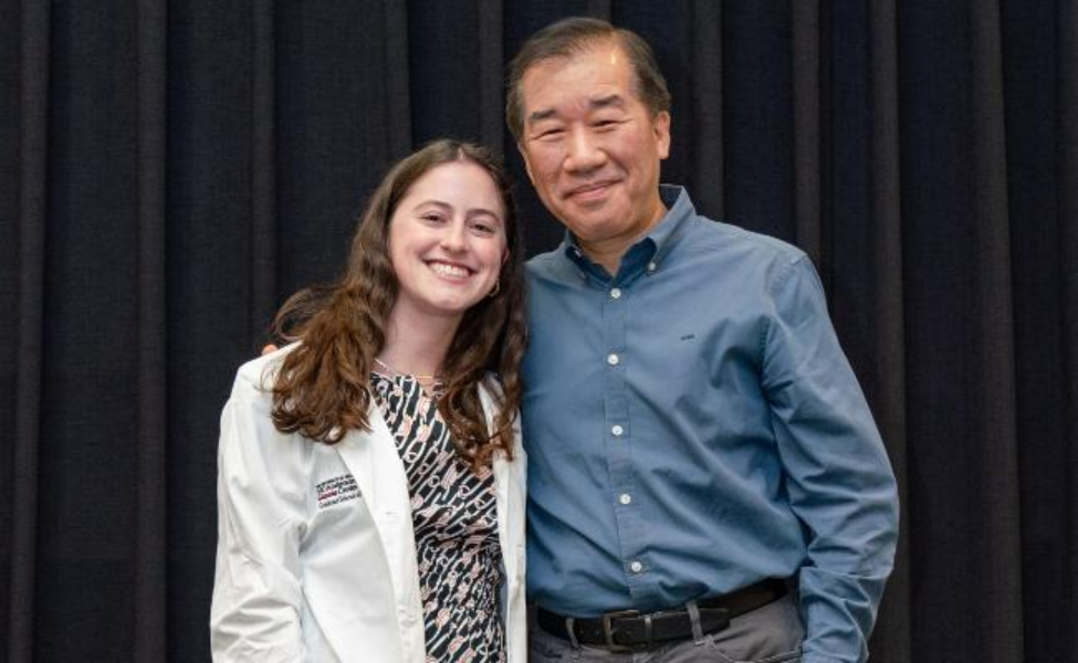 Fisher at the 2024 Lab Coat Ceremony with advisor Dung-Fang Lee, PhD