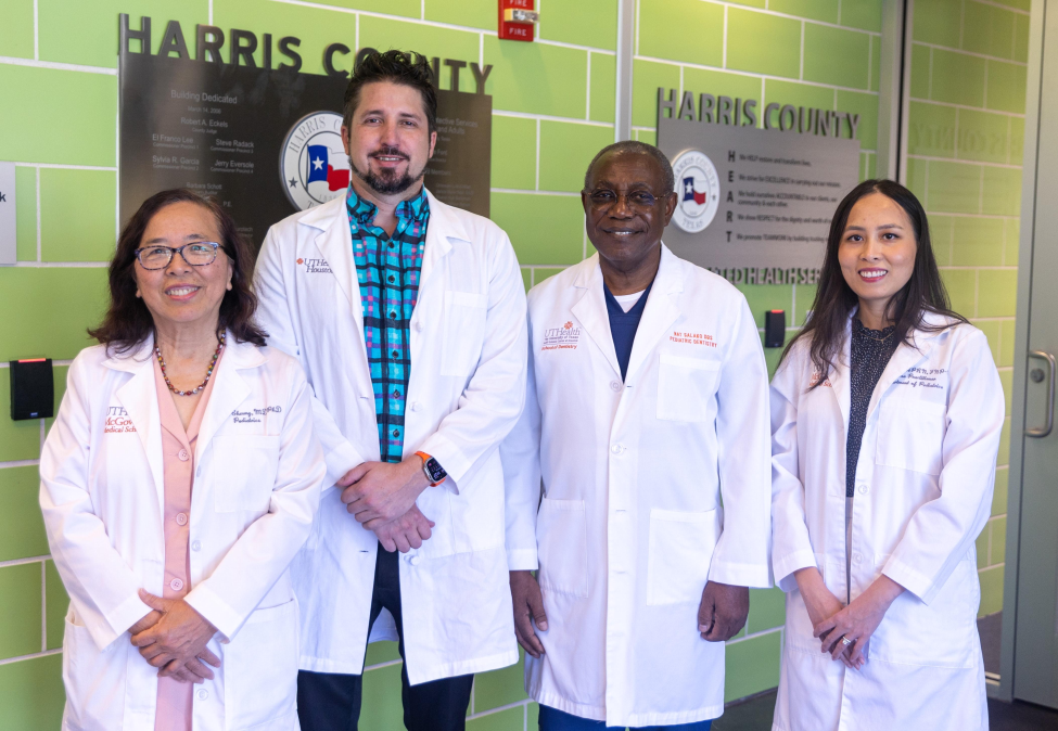 From left to right: Kim Cheung, MD; Christopher Frederick, DO; Nathanael Salako, BDS; and Tram Mai, NP, from UTHealth Houston join to provide comprehensive health care. (Photo by UTHealth Houston)