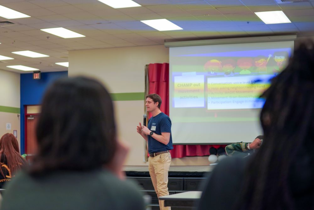Timothy J. Walker leads a physical activity education seminar at Houston’s Spring Independent School District on January 2, 2024