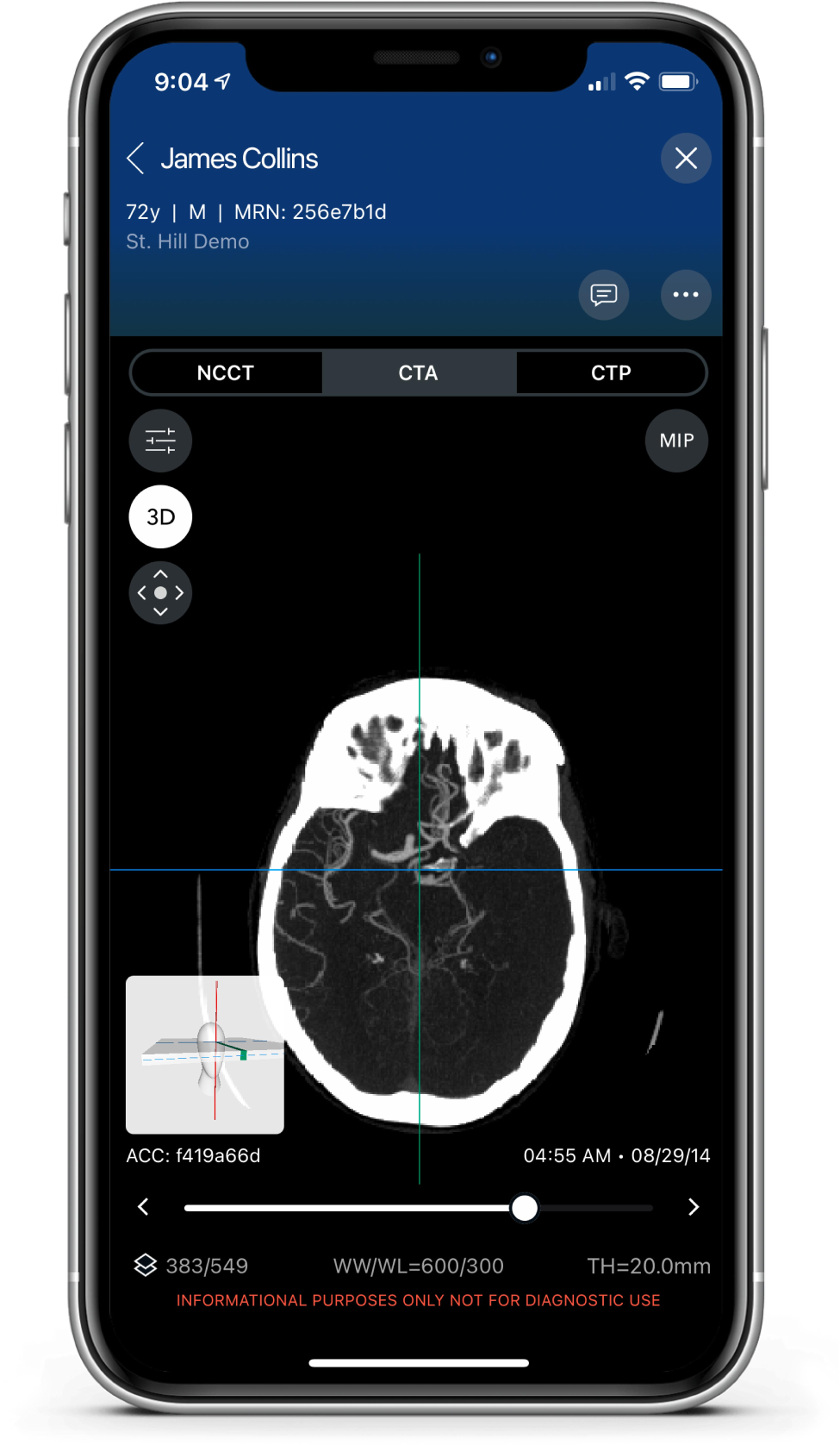 Viz LVO allows clinicians and radiologists to receive real-time alerts to their mobile phones, notifying them of possible LVO within moments of CT imaging completion. (Demo courtesy of Viz.ai)
