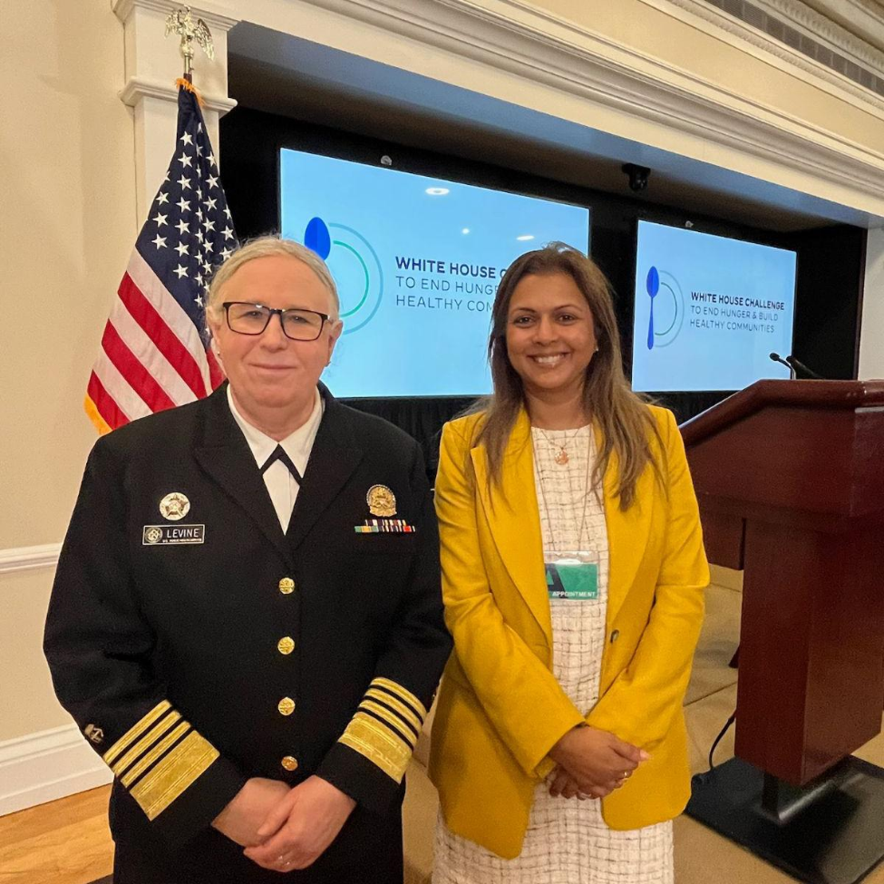 Admiral Rachel L. Levine, MD, assistant secretary for health with the U.S. Department of Health and Human Services, poses with Sharma in Washington, D.C. (Photo courtesy of Shreela Sharma, PhD, RD)